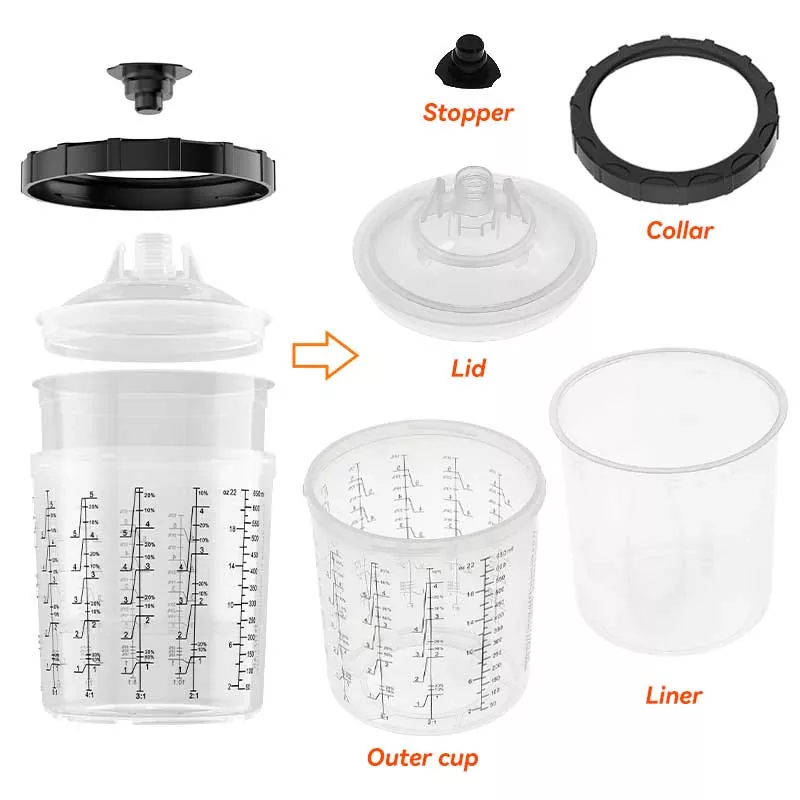 • 600ML டிஸ்போசபிள் பெயிண்ட் கப் சிஸ்டம் 1.0600ML டிஸ்போசபிள் பெயிண்ட் கப் சிஸ்டம் 1.0