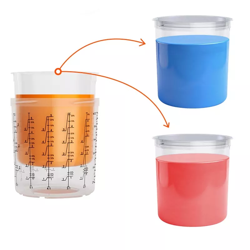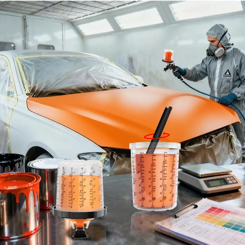 ஒரு யூனிட்டில் கலத்தல், வடிகட்டுதல், தெளித்தல் மற்றும் சேமிப்பு செயல்பாடுகளை ஒருங்கிணைத்து டிஸ்போசபிள் பெயிண்ட் கப் அமைப்பு. இது ப்ரீ-பெயிண்ட் தயாரிப்பை எளிதாக்குவது மட்டுமல்லாமல், கப் மற்றும் பேப்பர் ஃபனல்களை கலக்கும் செலவையும் மிச்சப்படுத்துகிறது, இது தயாரிப்பு நேரத்தை மிச்சப்படுத்துவதற்கும் தெளிக்கும் திறனை மேம்படுத்துவதற்கும் சரியான தேர்வாக அமைகிறது.